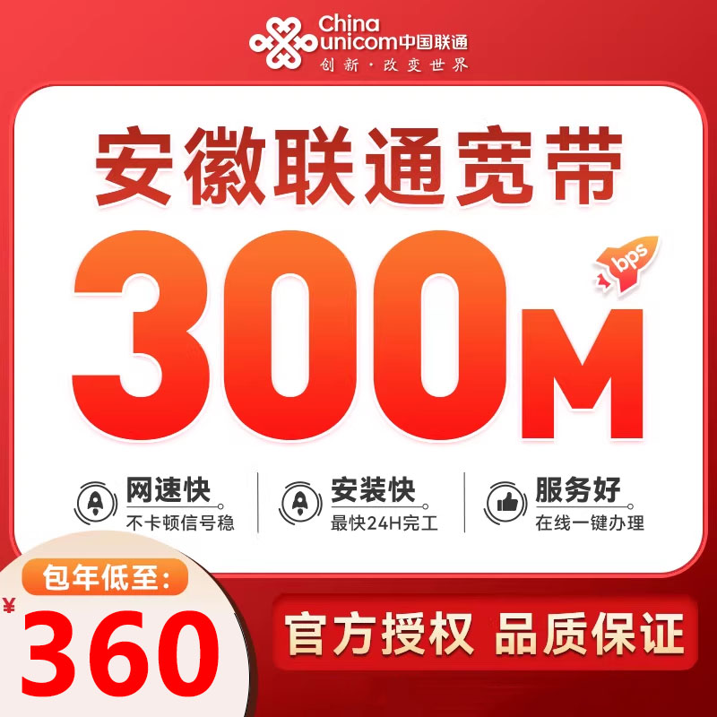安徽联通单宽带300M360元包年