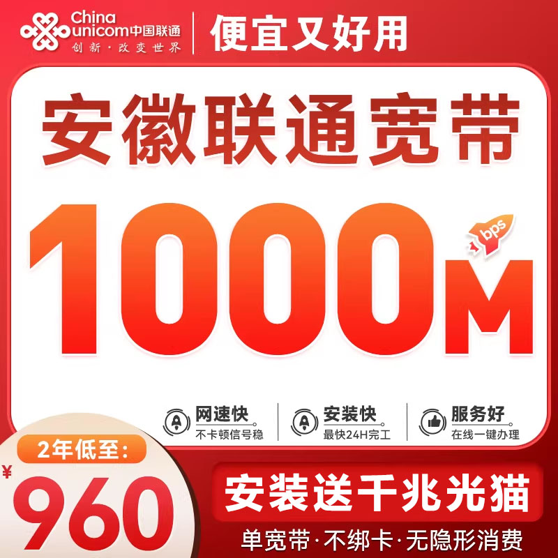 安徽联通单宽带1000M960元包2年